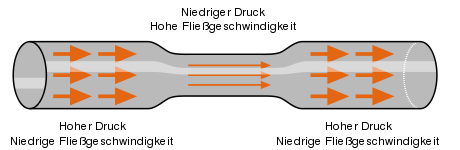 Bei sich verengendem Querschnitt steigt die Strömungsgeschwindigkeit